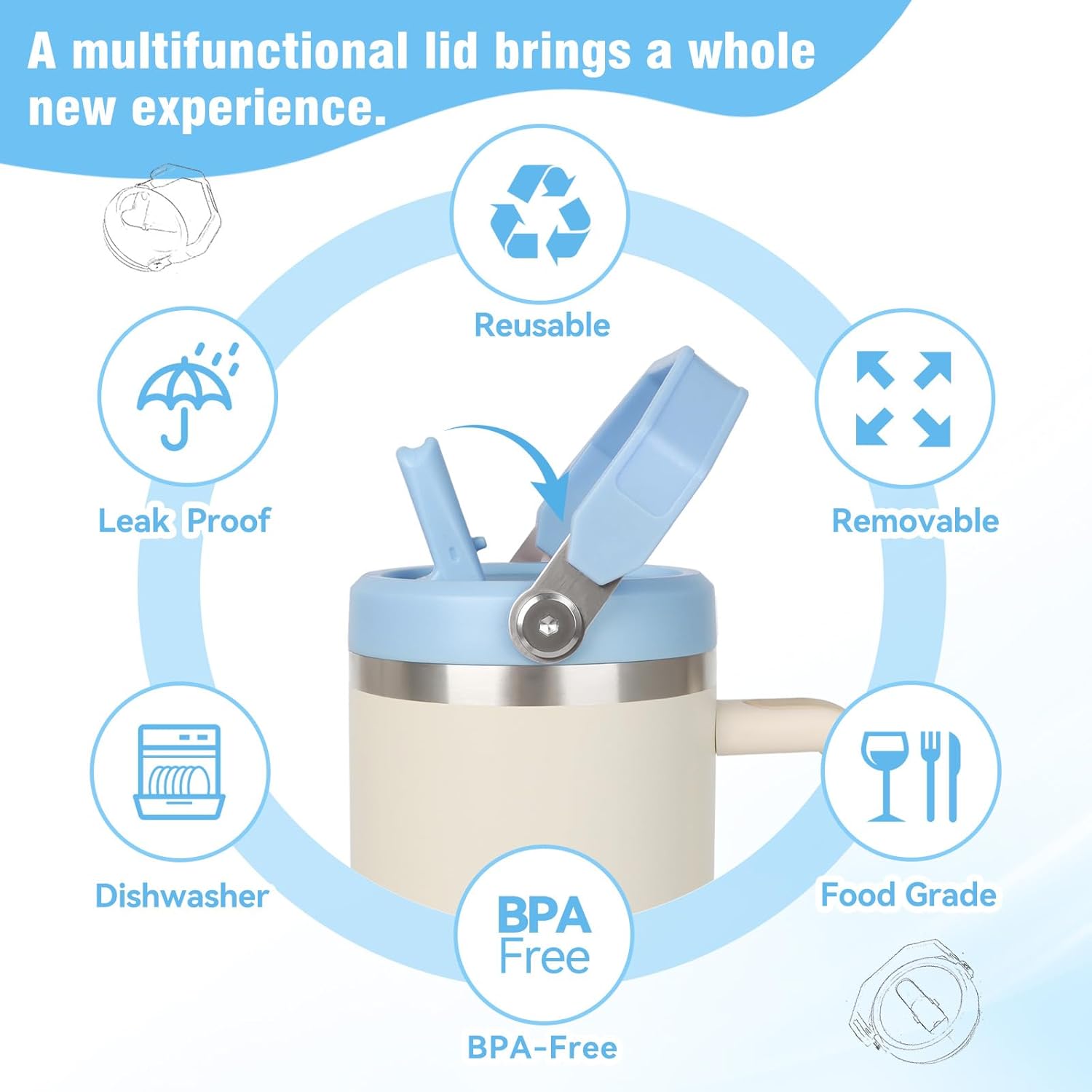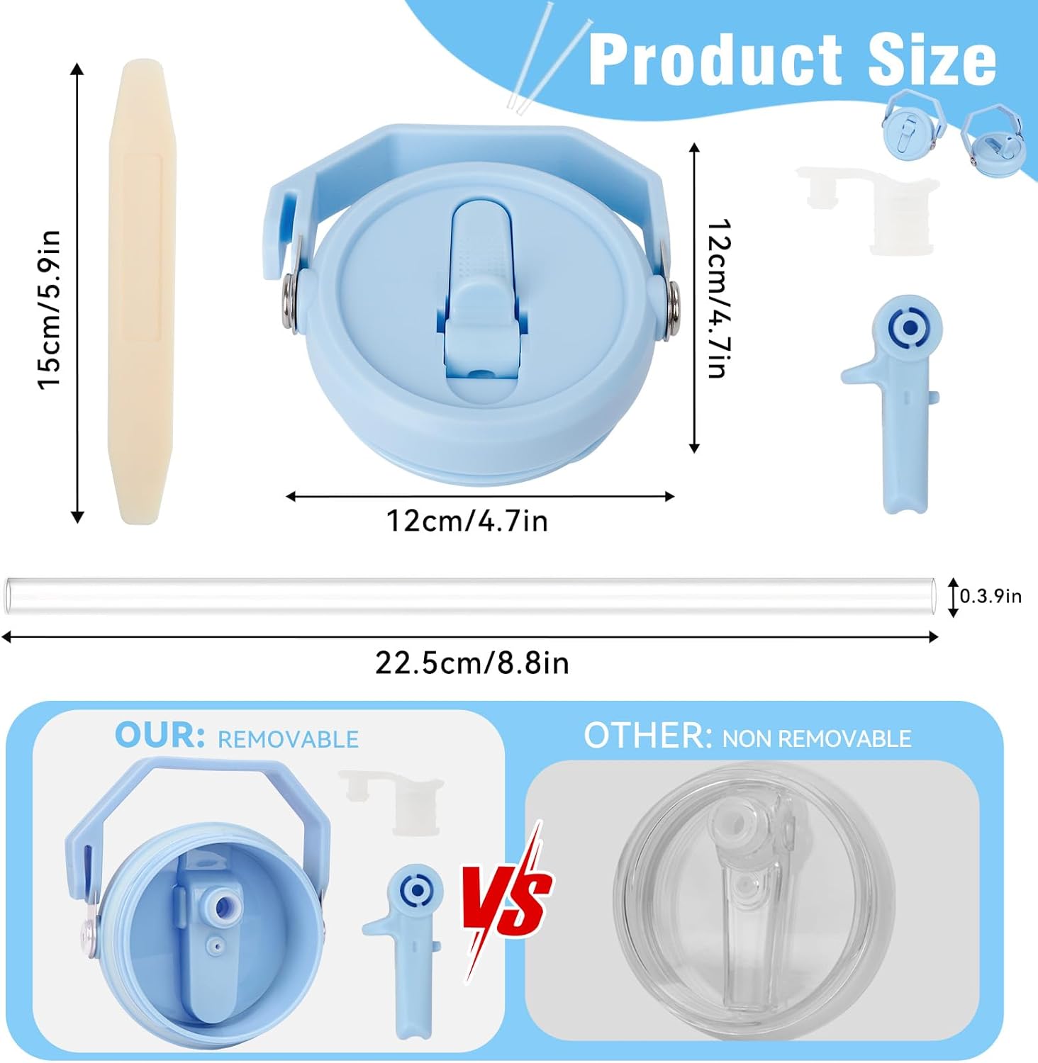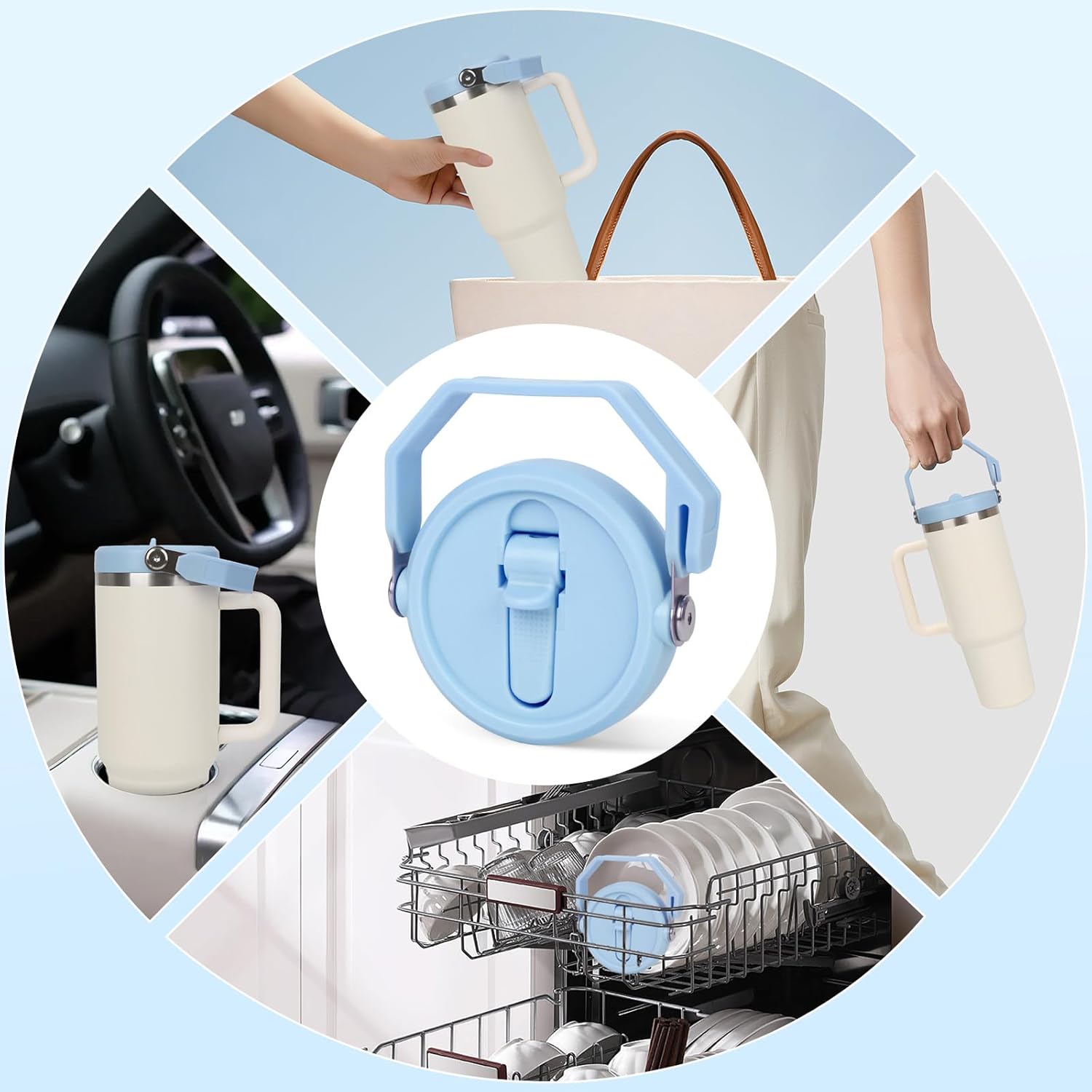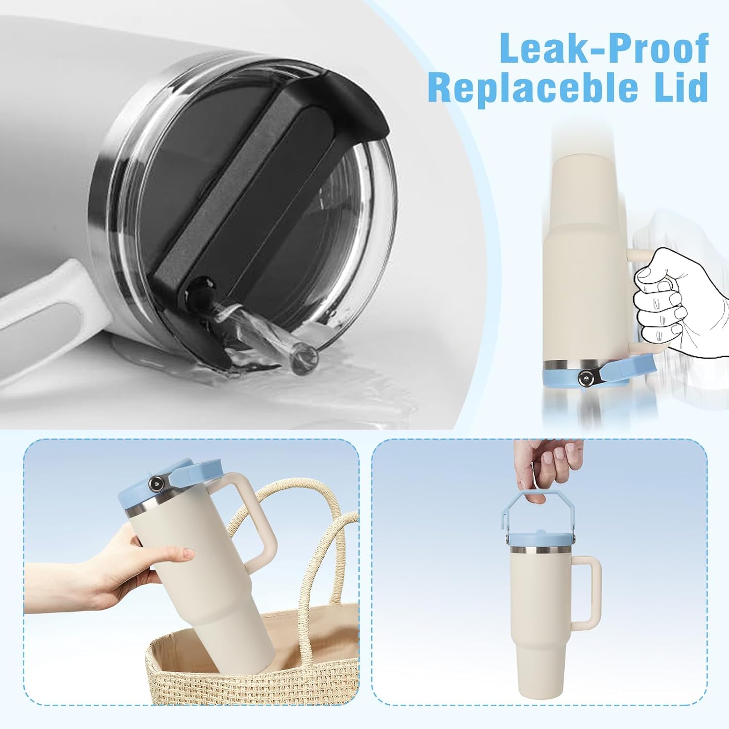 40 oz Flip Straw Leak Proof Lid with Handle for 40 oz. Stanley Quencher H2.0 & Pro Tour, Replacement Lid, Spill-proof, & Reusable (blue)