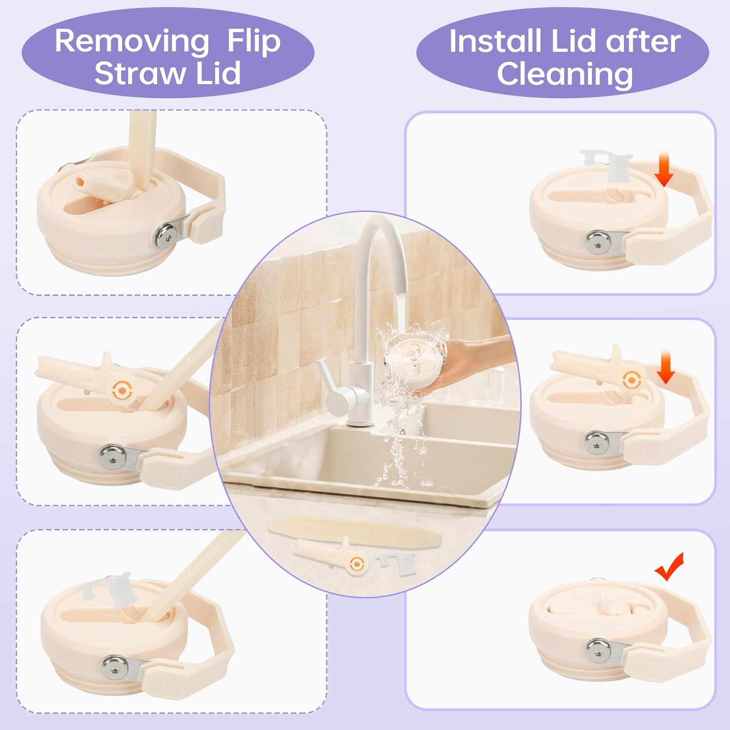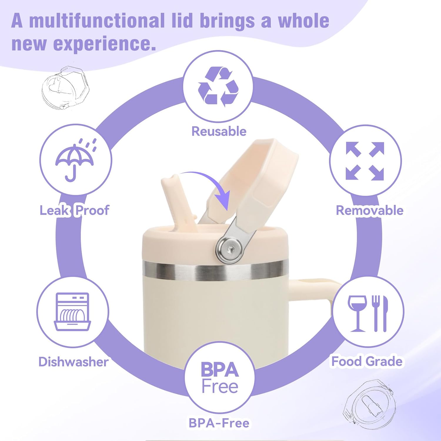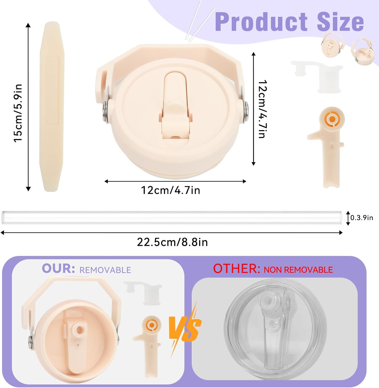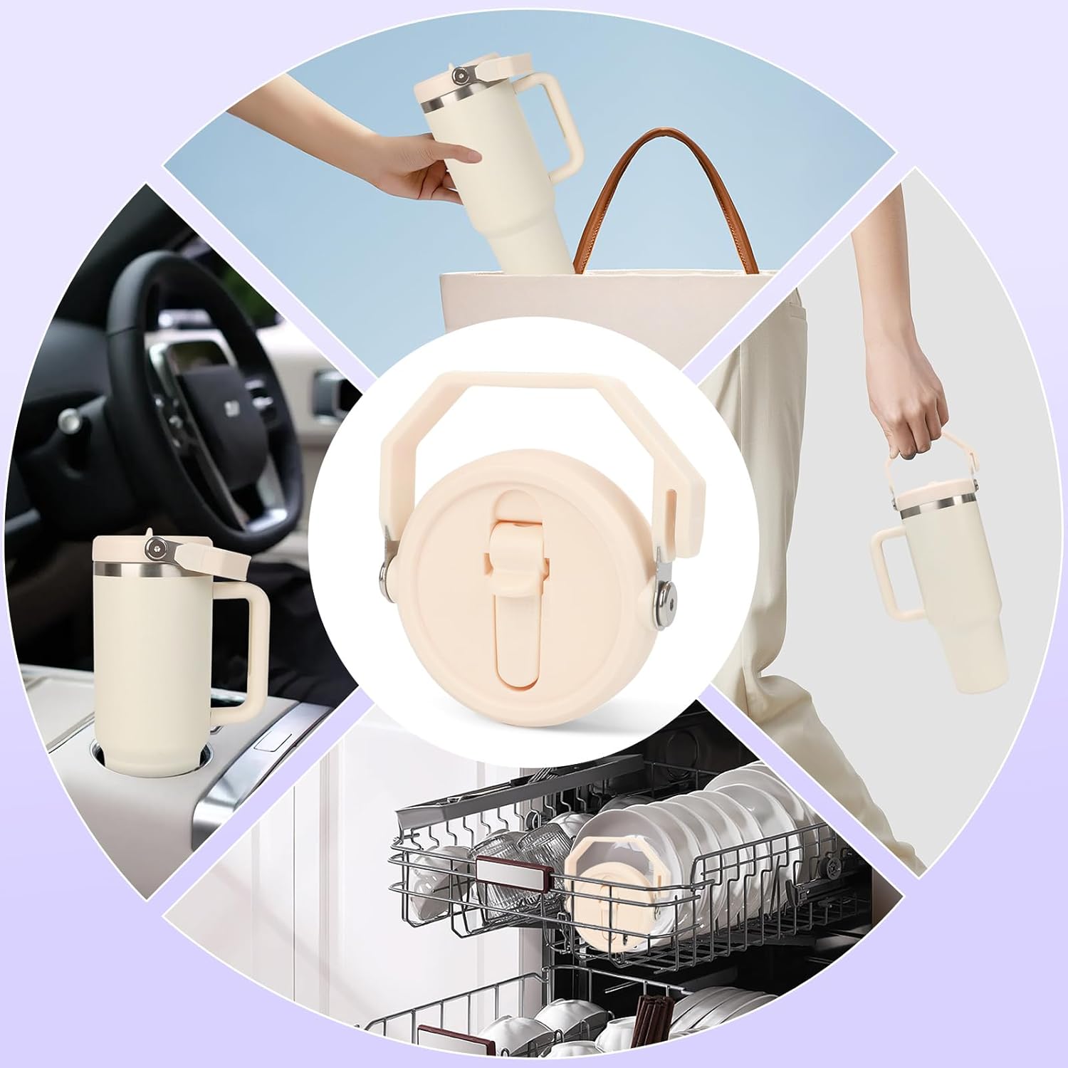 40 oz Flip Straw Leak Proof Lid with Handle for 40 oz. Stanley Quencher H2.0 & Pro Tour, Replacement Lid, Spill-proof, & Reusable (beige)