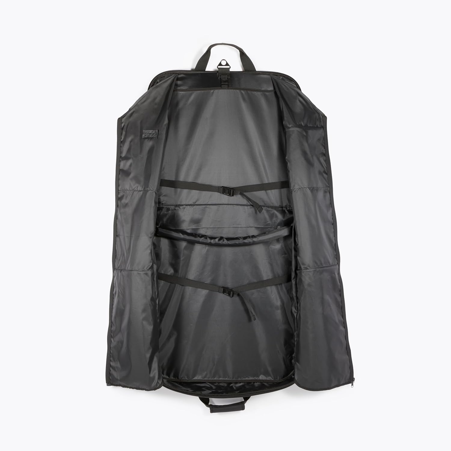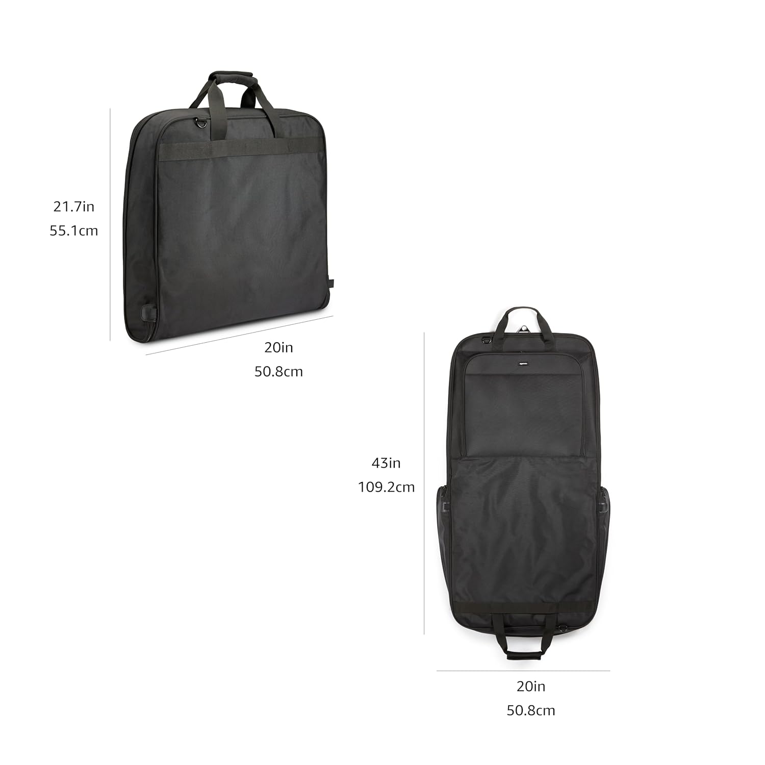 Amazon Basics 43" Premium Garment Bag for Travel, Suit Bag with Shoulder Strap for Suits and Dresses, 1680D Polyester Fabric, Exterior/Interior Pockets, Leather-reinforced Corners, Trifold, Black