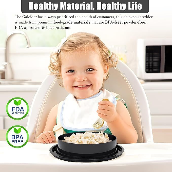 This chicken shredder boasts 13 built-in body teeth with an optimized layout and quantity, allowing you to achieve evenly shredded chicken with just a few twists. Crafted from food-grade PP and silicone non-slip mats, it ensures your shredded meat is both healthy and delicious. The shredder is BPA-free, powder-free, heat-resistant, and safe for both dishwasher and microwave use.