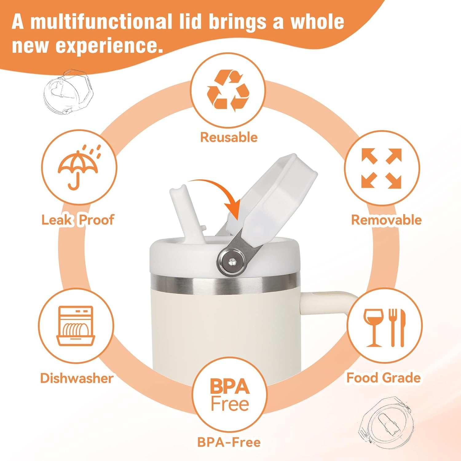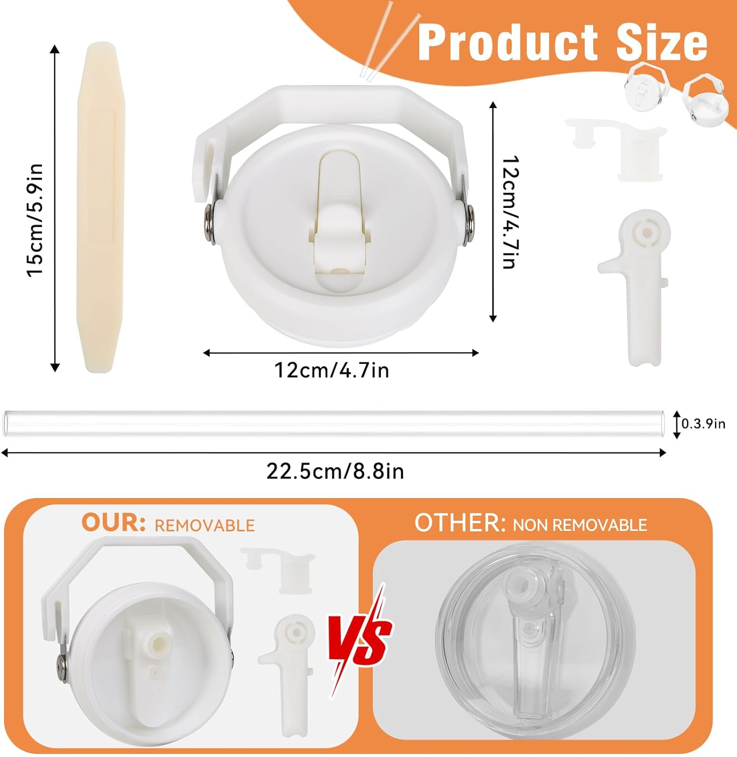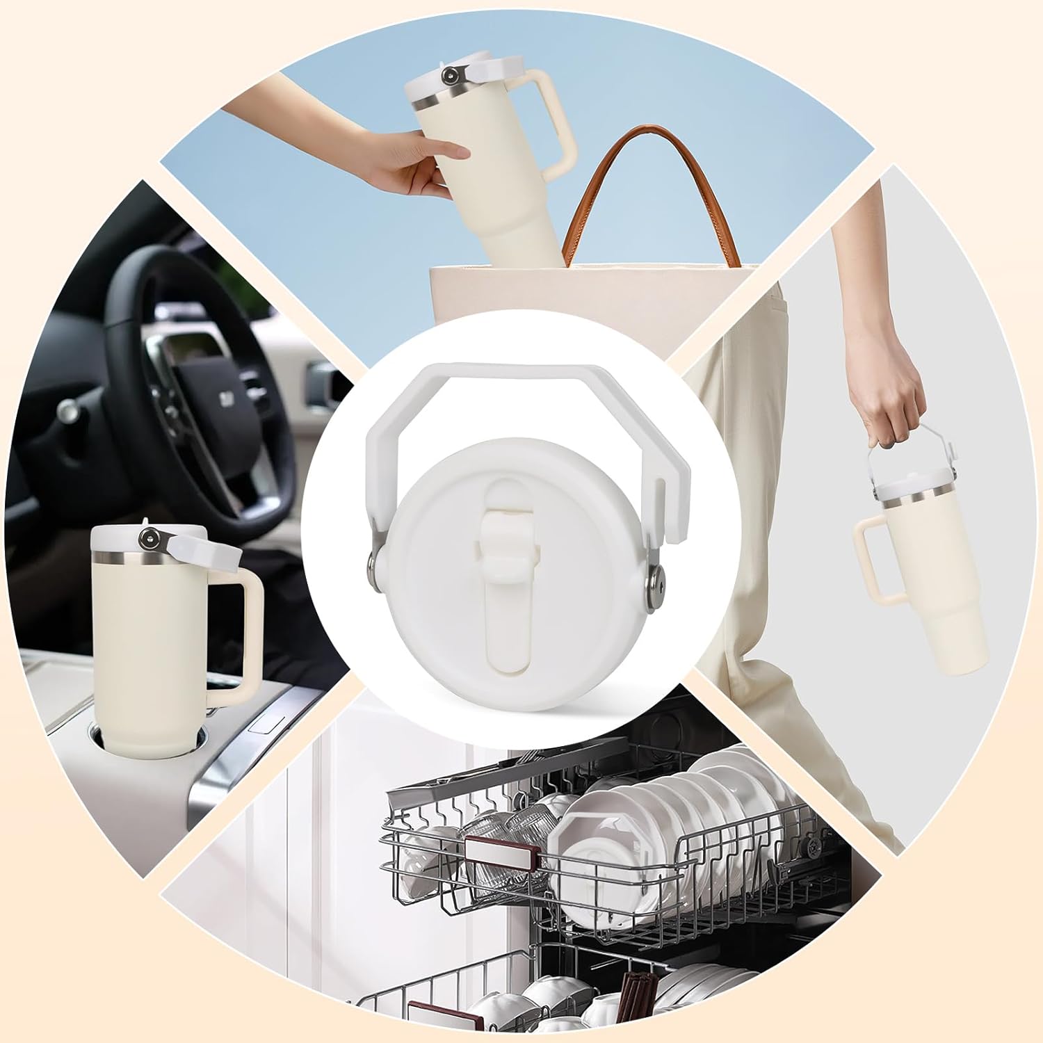 40 oz Flip Straw Leak Proof Lid with Handle for 40 oz. Stanley Quencher H2.0 & Pro Tour, Replacement Lid, Spill-proof, & Reusable (white)