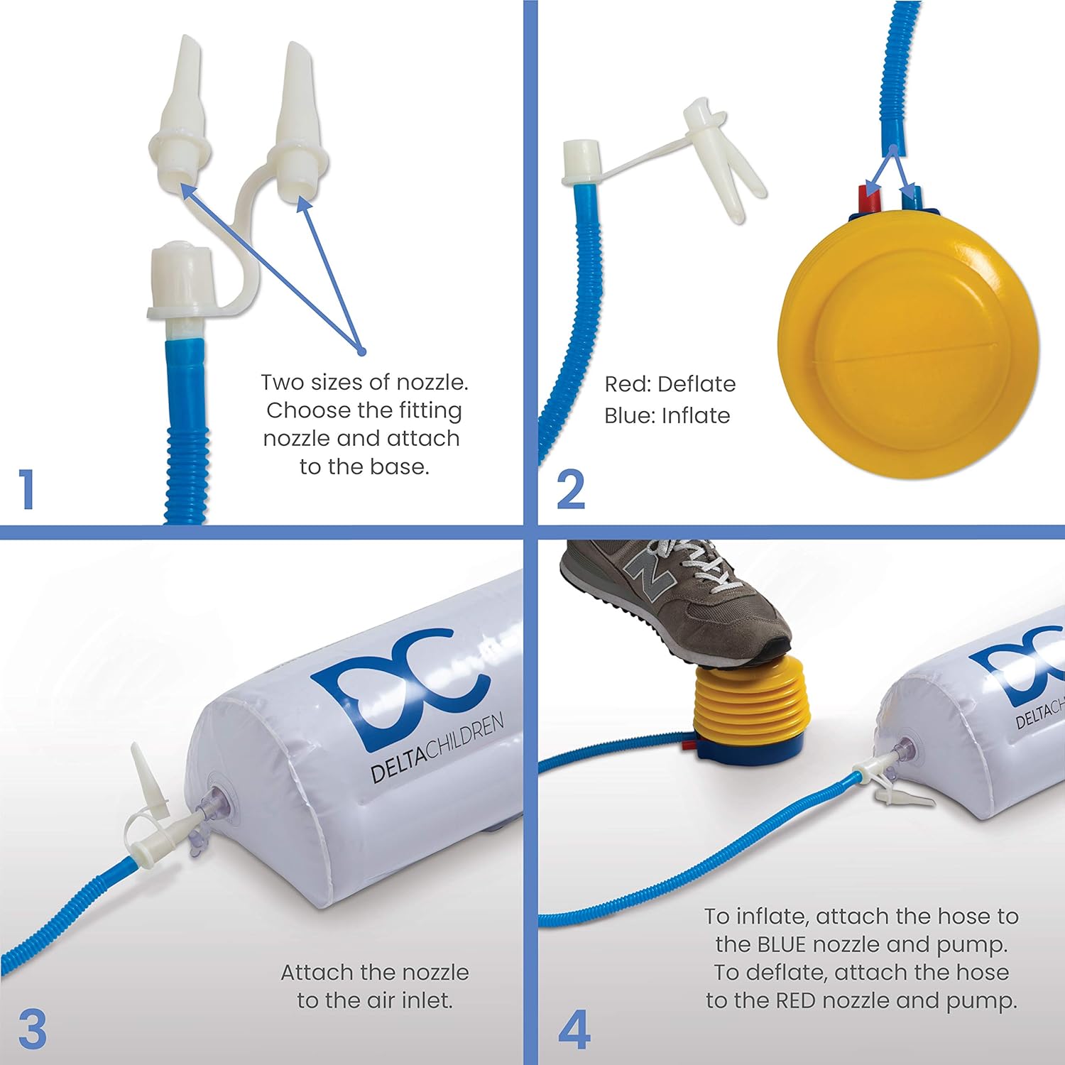 Inflatable Bed Rails for Toddlers & Kids with Foot Pump (2 Pack) - Leak-Proof Portable Guardrails Great for Travel or at Home, White