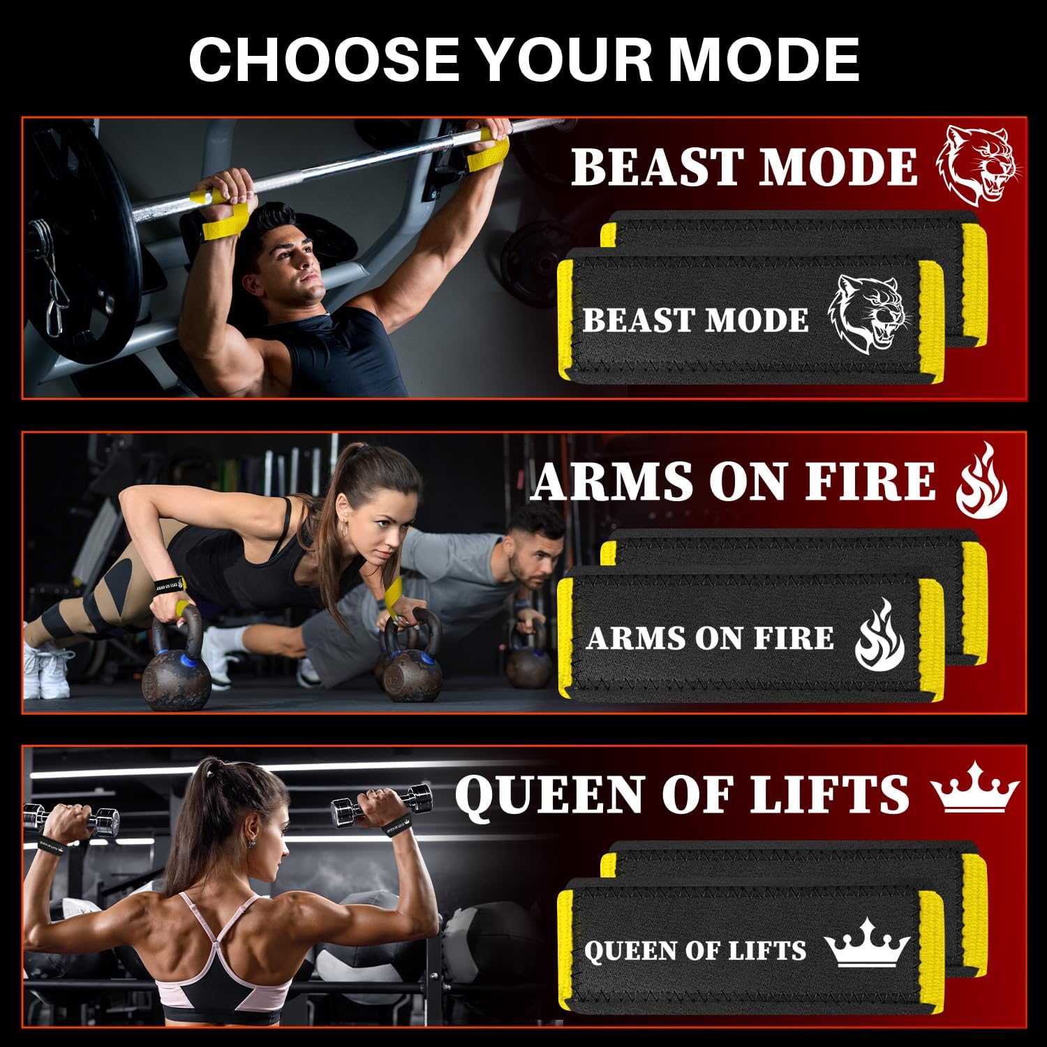 - 𝐓𝐀𝐊𝐄 𝐈𝐓 𝐎𝐍 𝐀𝐍𝐎𝐓𝐇𝐄𝐑 𝐋𝐄𝐕𝐄𝐋: Our deadlift straps will let you handle heavier weights. Wrap our lifting straps around the bar, take your training to new heights. Ideal for use with barbells, dumbbells and kettlebells, these straps are your key to unlocking maximum gains in the gym and lower your grip fatigue.