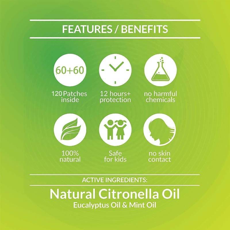 Effective and Safe Mosquito Patches: Made of Citronella Oil, all natural, plant based ingredients, DEET free, no harmful chemicals, non-toxic, environmentally friendly. These citronella mosquito patches for kids are effective and safe to use.