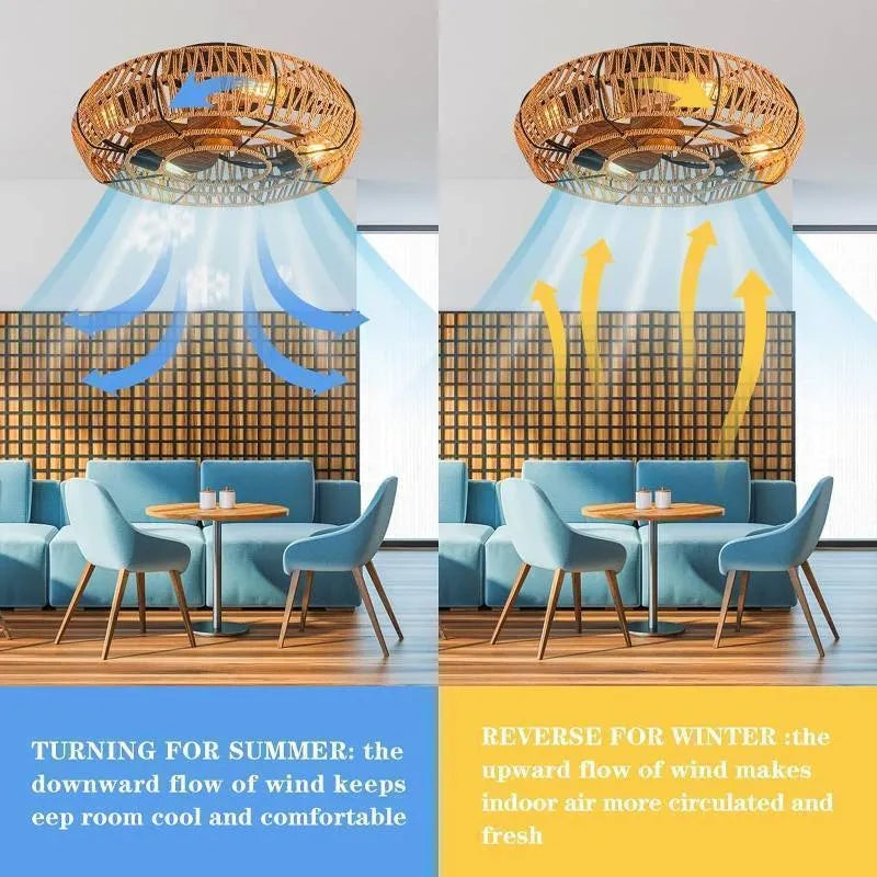 REVERSIBLE QUIET MOTOR: Enjoy a noise-free operation with our boho rattan ceiling fan. The silent fan blades and quiet pure copper motor make it perfect for use in bedrooms or other places. The reversible motor ceiling fan can not only rotate forward to bring refreshing cool air, but also rotate the motor in reverse to circulate the air.