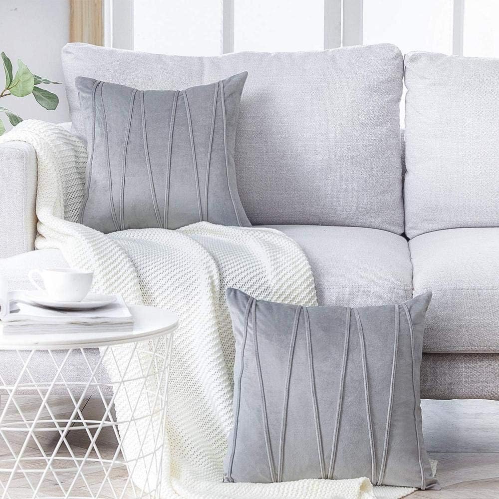 Pack of 2 Striped Velvet Throw Pillow Covers Modern Decorative Couch Throws Square Soft Cozy Pillowcases for Winter Bed Sofa Cushion Living Room (Gray, 22" x 22")